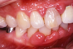 | 歯肉(歯ぐき)が赤く腫れます。歯磨きや食事の際に出血することもあります。 |